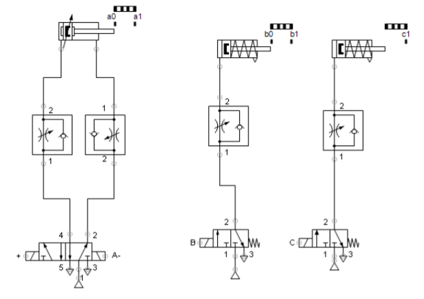 2. Cilinder A gaat uit -> cilinder B gaat uit -> cilinder B gaat in -> cilinder B gaat uit -> cilinder B gaat in -> cilinder B gaat uit -> cilinder C gaat uit -> cilinder a gaat in -> cilinder c gaat in